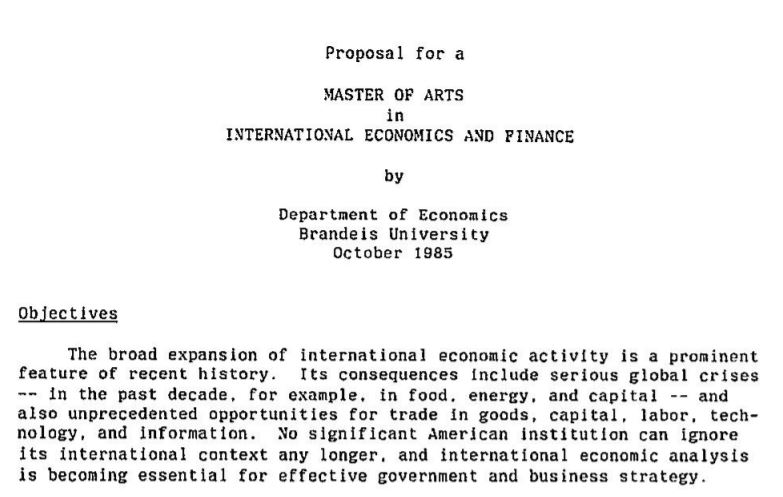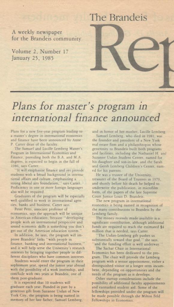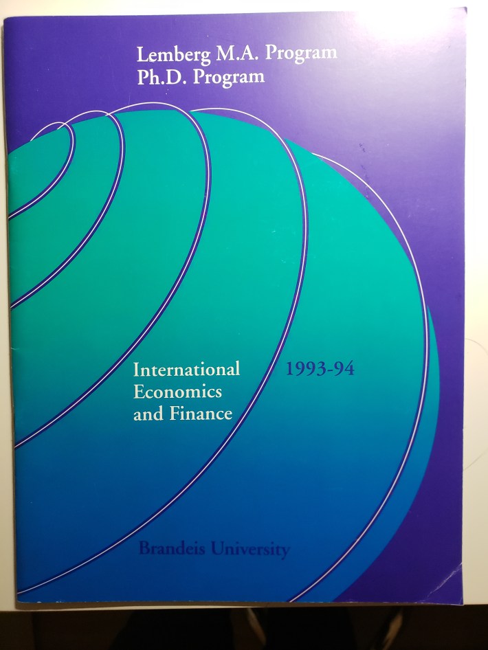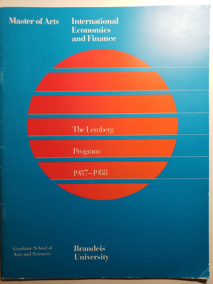 The Lemberg Program in International Economics and Finance was the Brandeis Economics Department’s first graduate program developed in the mid-1980s. Joe Berliner, Anne Carter, Tren Dolbear, Dick Weckstein and I played the most active roles.